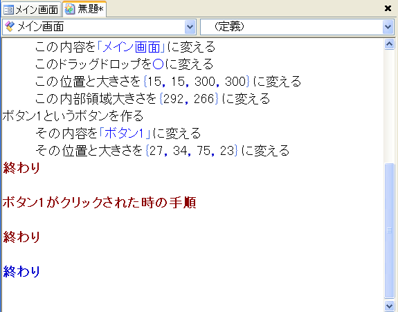 ちなみに、プログラムの内容はこんな感じです。(プロデルの公式HPから引用)