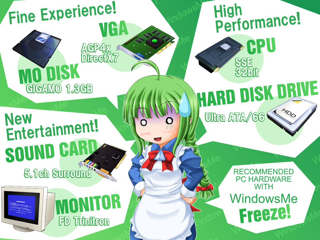 【忘れたい】Windows Meを皮肉った画像集【黒歴史】 2022年02月21日 21:35 本日は過去記事を再掲載いたします。 現在、Windows11が発表され、Windows10の技術を生かしながら新たなるOSへと変化していっております。一方、Microsoftの過去の歴史から決してしまいたOSがあります。Windows Meです。これはMicrosoftの黒歴史と言ってもいいくらいダメOSとしてのレッテルを世界中のユーザーから貼られてしまいました。その黒歴史のOS「Windows Me」を象徴するユーザーが考えた画像を今回ご紹介します。 明日から1週間更新をお休みします。(ゴールデンウィーク中は休みます)それではまた1週間後! 「Windows Me以前(MS-DOS含む)」カテゴリの最新記事 「面白」カテゴリの最新記事 タグ :#Windows#黒歴史#イメージ < 前の記事次の記事 > コメント コメント一覧 (6) 1. ときなしおのすけ 2018年06月02日 21:26 インストール・・・してみようかな。 2. (ノ・ω・)ノオオオォォォ- 2019年10月26日 16:51 ダMe ゴMe 3. Windows_BaCa 2020年09月03日 16:16 まあWindowsMeはXPの繋ぎだからSPはないよね 4. Me_users 2020年12月26日 17:57 やべえ... ME入れたけどドライバねぇ... 5. っゆy 2022年11月30日 19:35 インストールやってくる 6. おいしいやみーーかんしゃかんしゃ 2023年01月15日 15:13 やってみたけど本当に不安定 コメントフォーム 名前 コメント 評価する リセット リセット 顔 星 投稿する 情報を記憶
