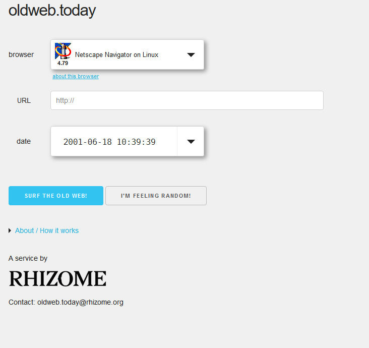 このサイトは「Internet Archive」や「Archive-It」などのサービスで保存されているWebページのアーカイブを使用しており、ブラウザの種類やWindows、Mac、LinuxといったOSを指定してやりると、そのブラウザにあった表示をエミュレートしてくれます。