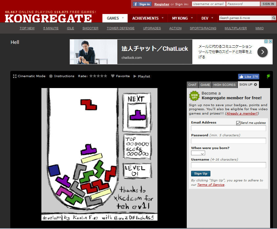a free online game on Kongregateというテトリスです。