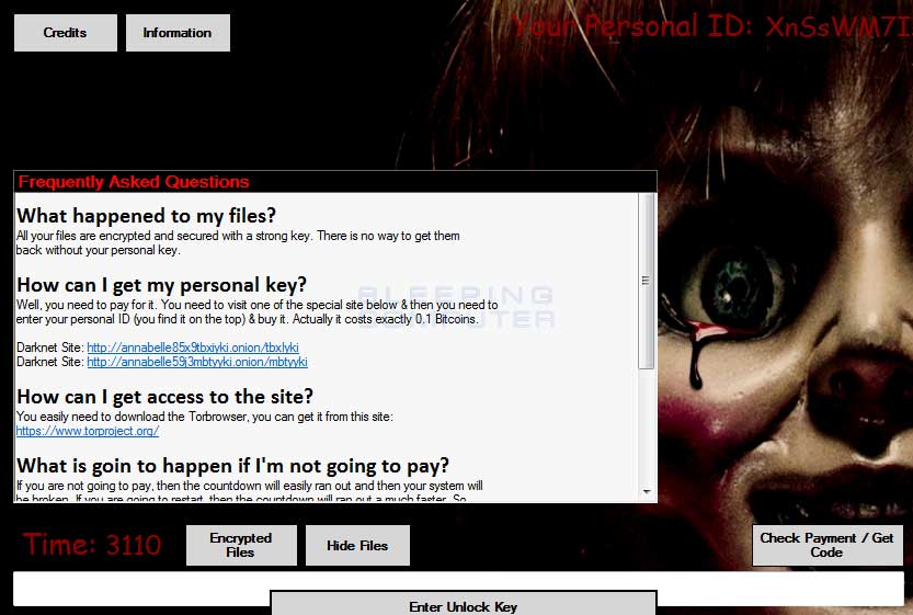 感染されたファイルは.ANNABELLEという拡張子で暗号化されます。
