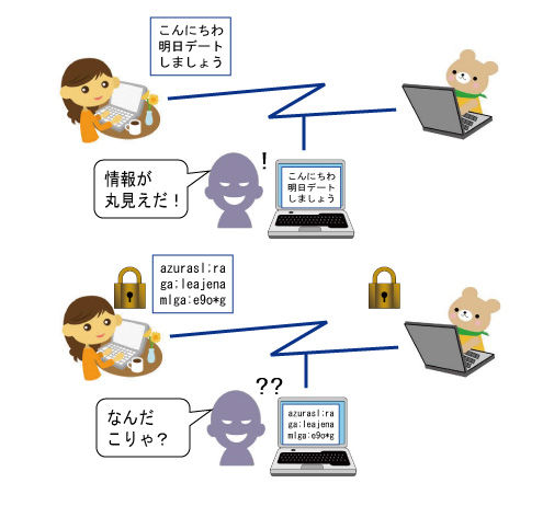 ネットワーク上のデータのやり取りについては前章でも説明したとおり、情報を1つのまとまりにしてそのままの状態で送受信しています。そのため、悪意のある第三者によってそのデータが盗まれる危険性が大いにあります。