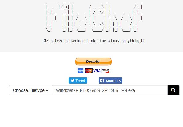 実際に検索してみましょう。過去のOSであるのWindowsXPのサービスパックSP3を検索してみましょう。