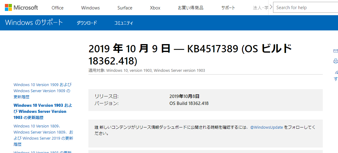 まずは、原因となるKB番号から内部の更新プログラムのパッケージIDを割り出します。この作業は、まず更新のKB番号からOSのビルド番号を特定します。