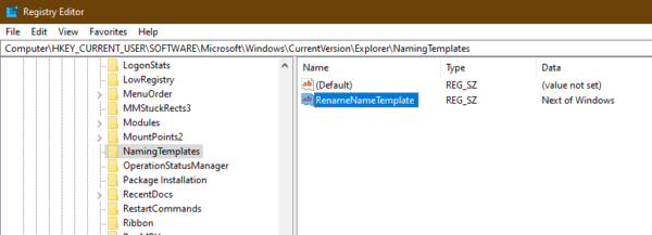 規定の名前を変更するにはレジストリを変更する必要があります。