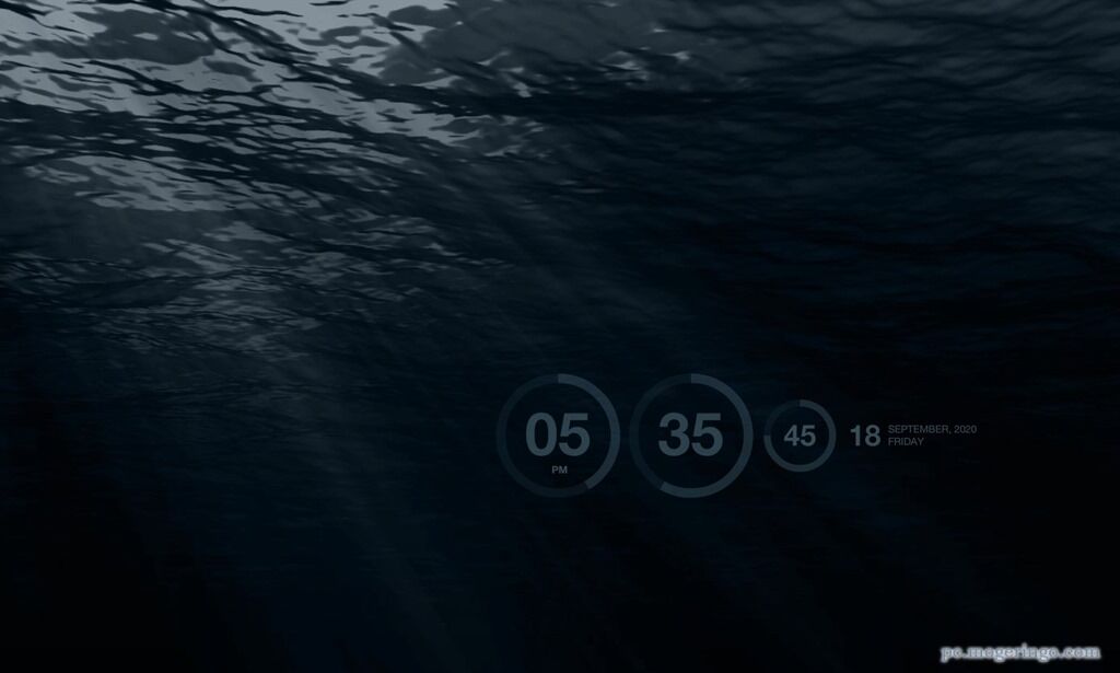 落ち着いたスクリーンセーバーを使用したい人はこのスクリーンセーバーがおすすめです。水中・深海の幻想的な雰囲気の中にエレガントにデザインされた画面の真ん中に日付が表示されます。水面を通してきらめく光がとても幻想的です。