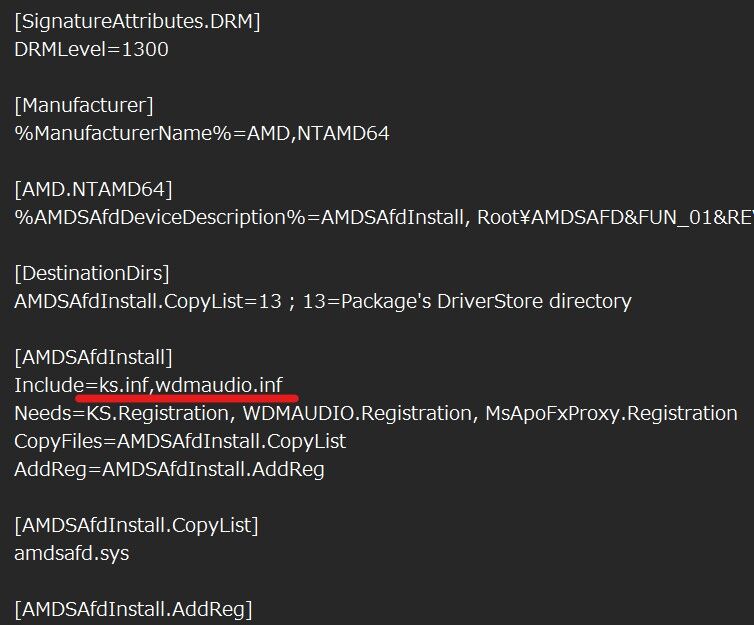 先ほど記されていた「公開名」に書かれているInfファイルを探し、メモ帳で開きます。