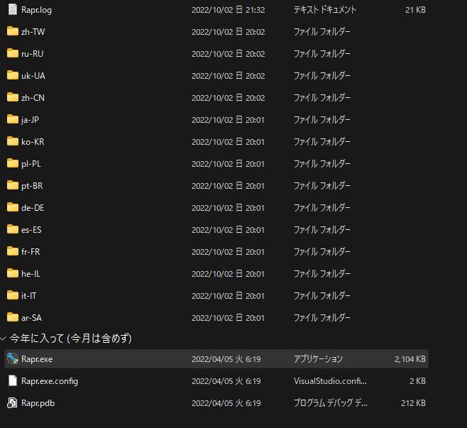 「Rapr.exe」を右クリックし、「管理者として実行」します。