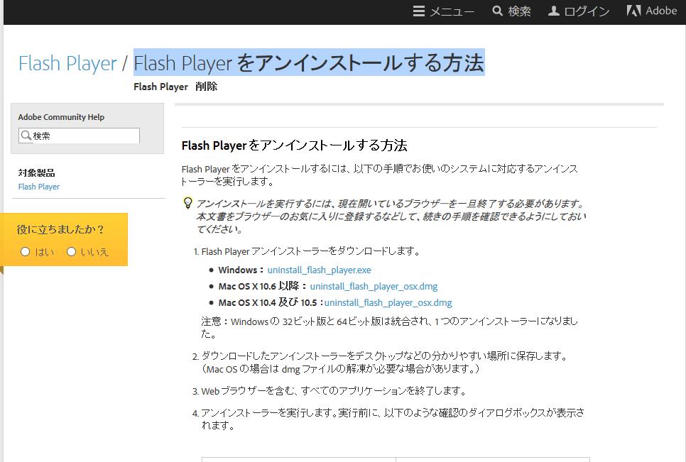 Adobe Flash Player をアンインストールする方法