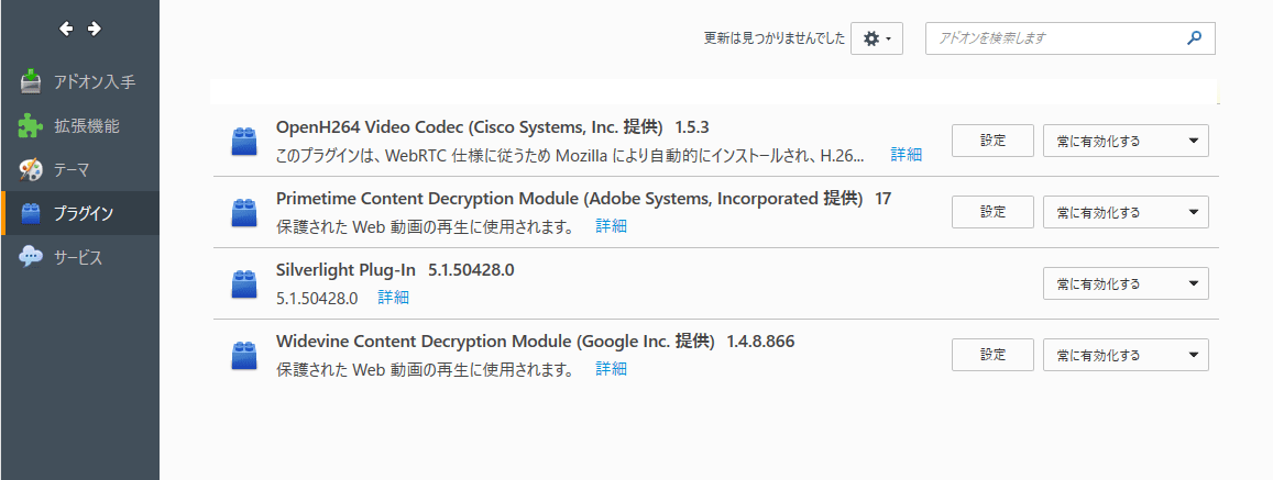 動画の場合、Firefoxのプラグインに「Primetime Content Decryption Module (Adobe Systems, Incorporated 提供)」というのがあれば、大抵のFlashで再生されていた動画はこのプラグインで再生できますので、、今までのAdobe Flash Playerプラグインを削除することをお勧めいたします。