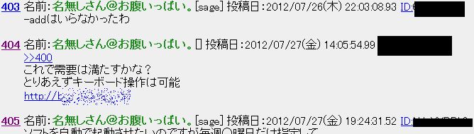・利用した掲示板のスレッドの更新。これも前記と同様に遠隔操作するために必要となります。